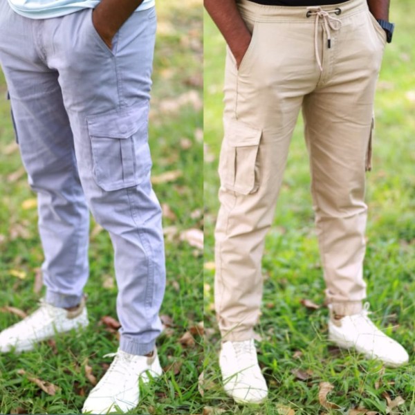 2 pcs combo Cream and silver color 6 pocket cargo pant-