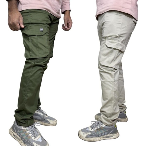 2 pcs combo Cream and Olive color 6 pocket cargo pant